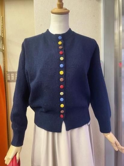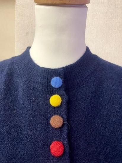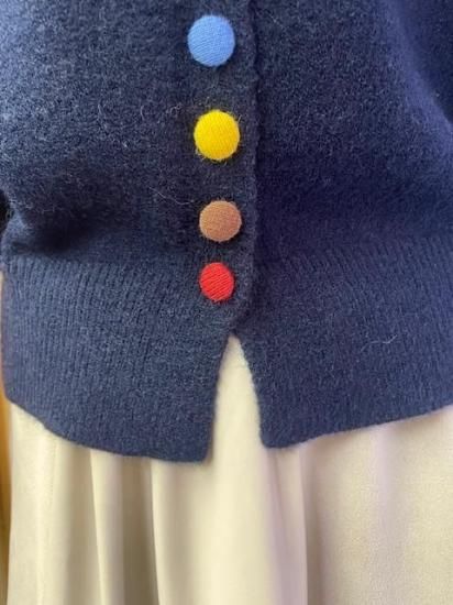 しっかりと目の込んだ暖かいニットに、たくさんのカラフルなボタンがとても可愛らしく、パッと目を惹きます。